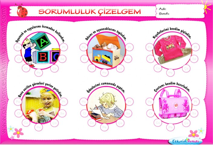 Sorumluluk; erken çocukluk döneminden itibaren çocuğun yaşına, cinsiyetine ve gelişim düzeyine uygun olarak görevlerini yerine getirmesidir. Hayat ile ilgili diğer değerler gibi sorumluluk da, çocuğun öncelikle anne babasından daha sonra sosyal çevresinden öğrendiği ve geliştirdiği bir beceridir. Çocukların gelişmesini desteklerken onlara hayatları boyunca gereken iç disiplin, otokontrol ve görev bilincini küçük yaşlarda kazandırılacak sorumluluk bilinci ile sağlanmaktadır.
