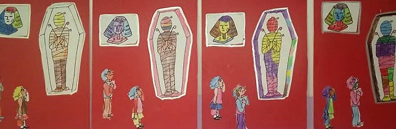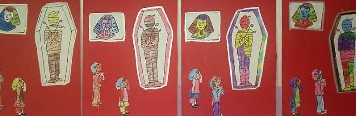 müzeler haftası nedeni ile ilgili boyama sayfası boyandıktan sonra tek tek kesildi ve tekrar renkli fon kartonunun üstüne yapıştırıldı
